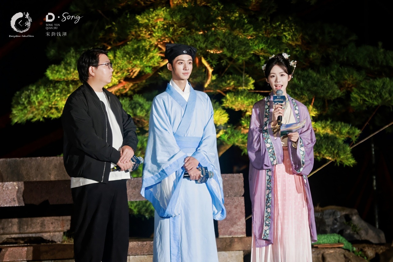 点映礼上,短剧导演陈友及主演周翊涛、胡可欣分享他们的创作感言。陈友希望这部短剧能成为东钱湖的动态文化手册,为文旅品牌的提升注入新动能;周翊涛饰演以史浩为原型的“史恒”,他表示,史浩的孝文化,不仅是史家家风的传承,更是咱们中华民族家风传承的典范;胡可欣在剧中演的是个意外穿越到南宋的女孩,她在讲述中把“十二雅境”活色生香的体验娓娓道来。